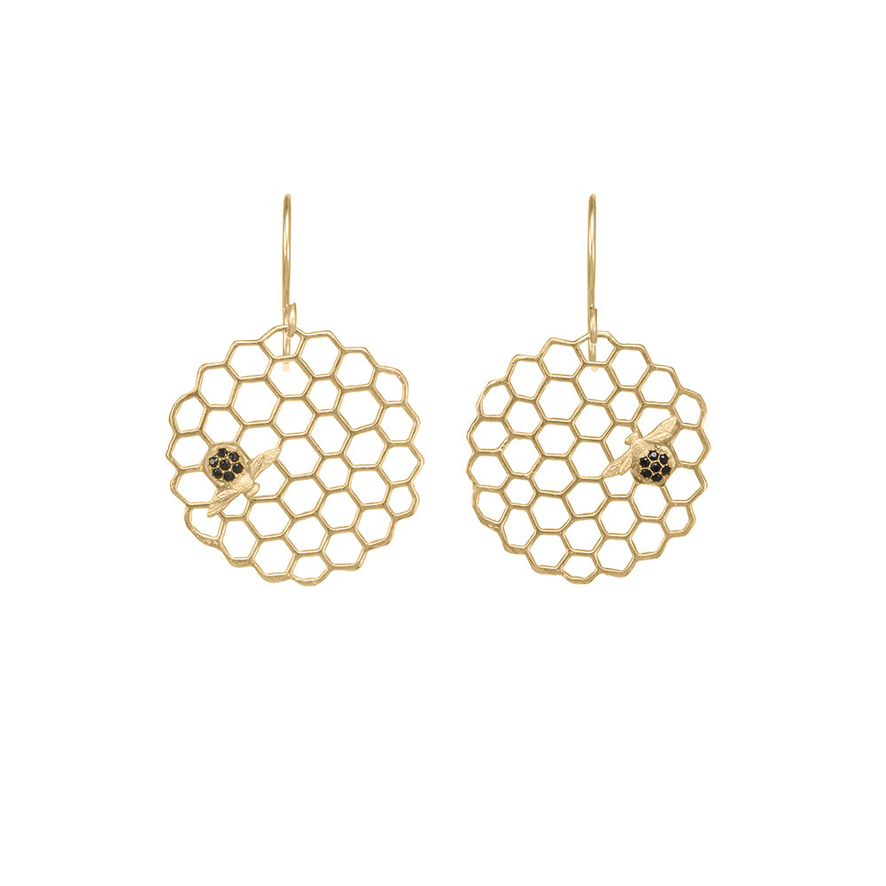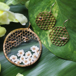 Make a statement wearing our stunning honeycomb with bee earrings. These artisan-crafted earrings are a nod to the bu...