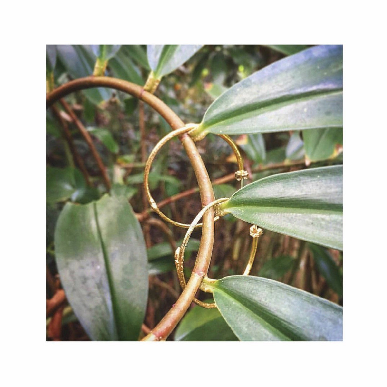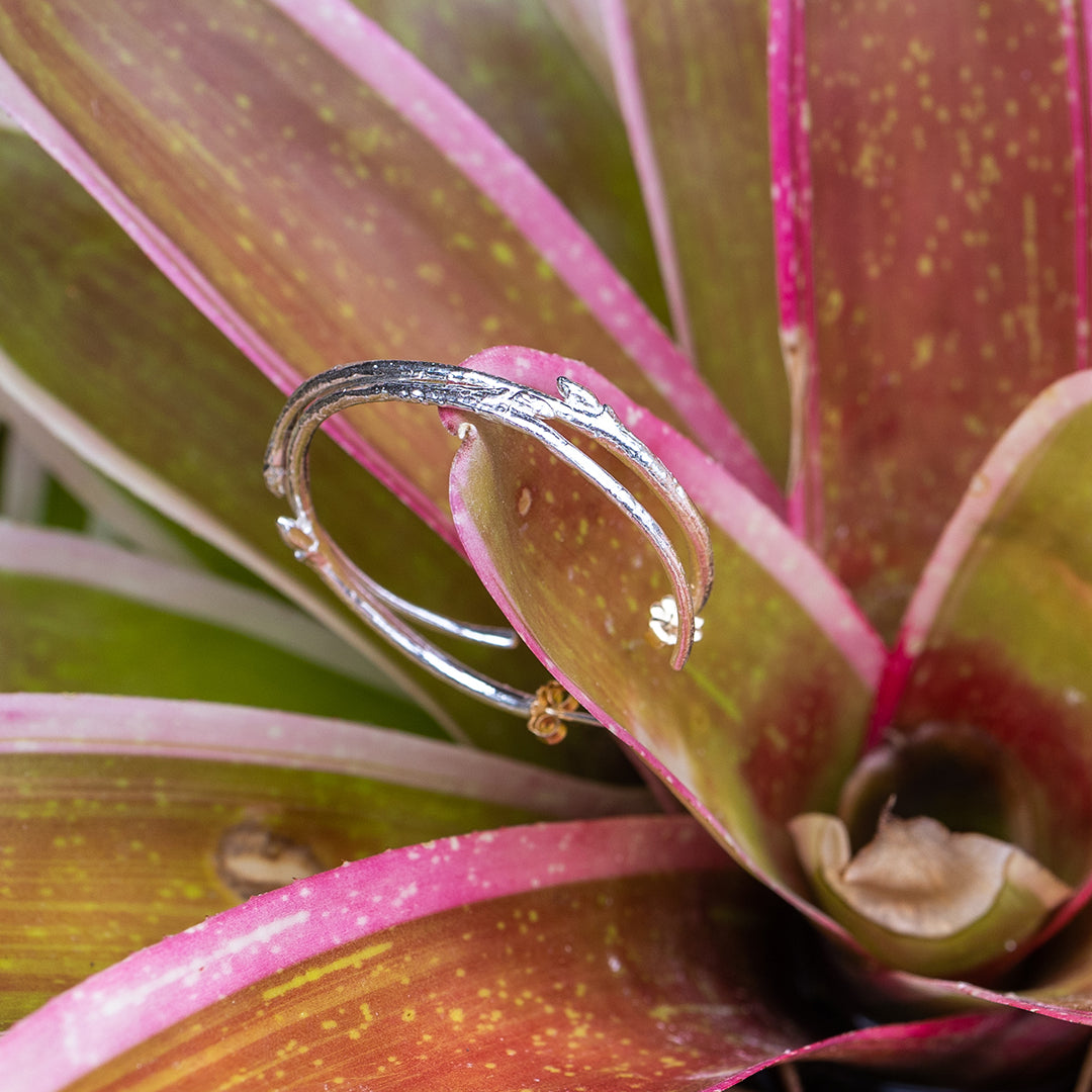 Cast from real branches found in the forest, these hoop earrings feature a circle of twigs with delicate buds showing...