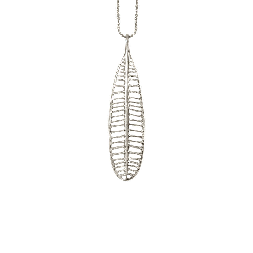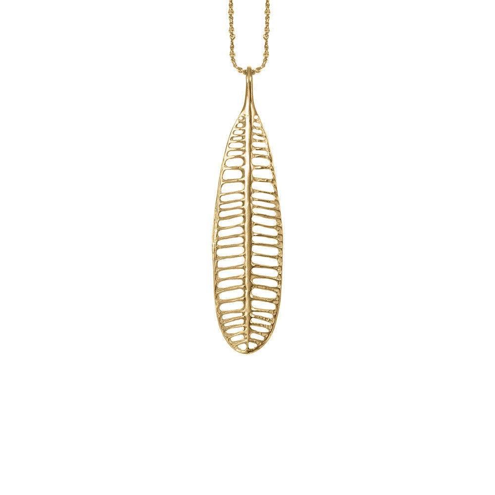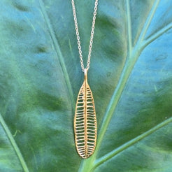 Cast from a real leaf, the intricate veining and naturally elegant shape of the Large Plumeria Cutout Necklace combin...