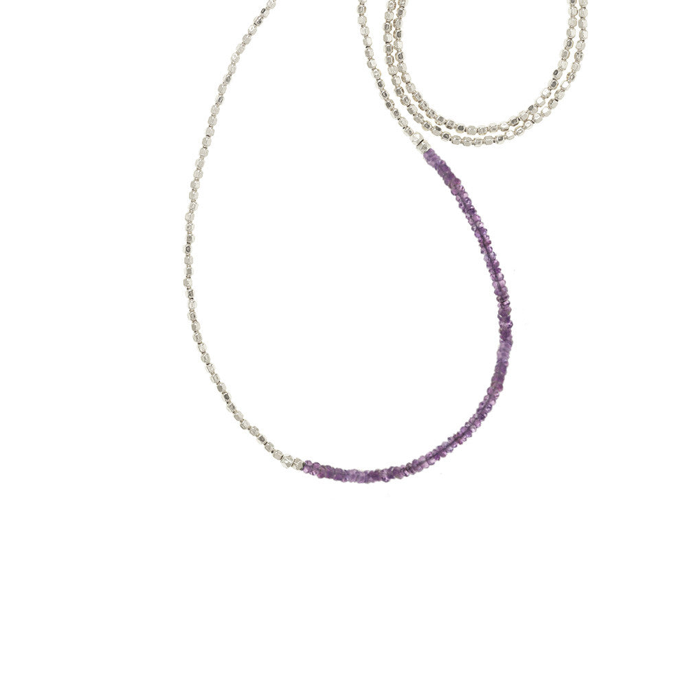 Find your balance with the Gemstone Fade Necklaces, featuring an offset section of richly hued gemstone rondelles hel...