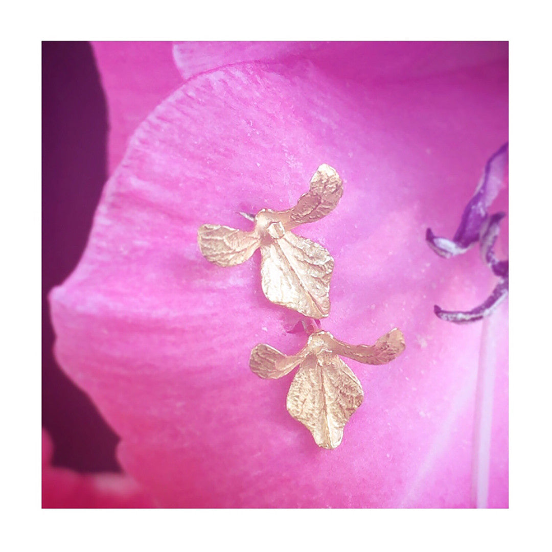 Perfect for everyday wear, these minimal earrings are cast from soft orchid petals and finished with 18K gold vermei...